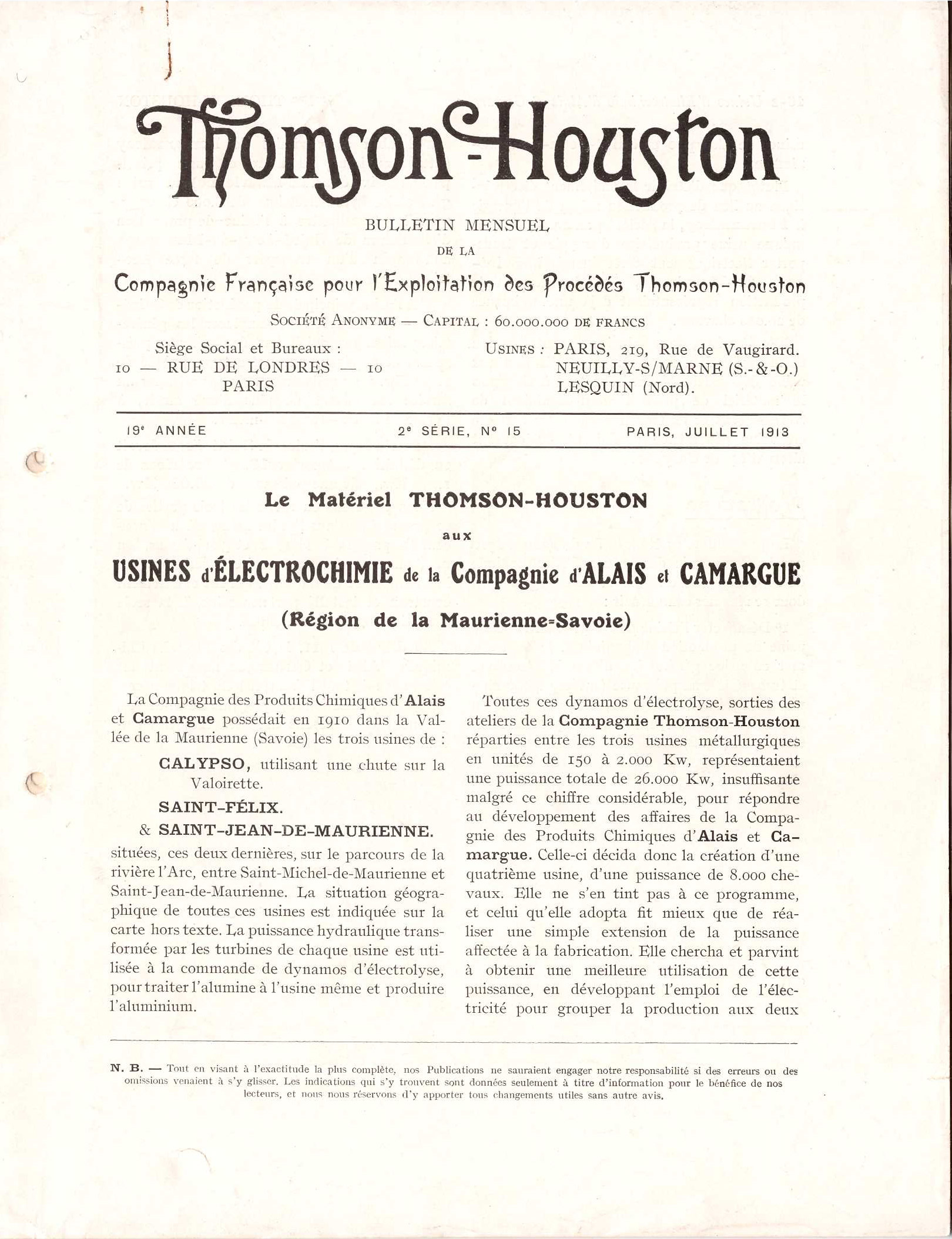 - Paris: Compagnie Française pour l'Exploitation des Procédés Thomson-Houston, 1913
