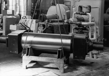 Atelier de fonderie et de machines "3C". Machine 3C2 : vue du cylindre avec ses paliers sur châssis