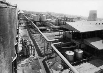 Fria, usine de Kimbo (Guinée) – Décomposeurs, bacs à liqueur, évaporateurs : vue d'ensemble